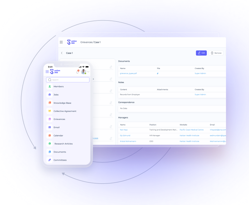 Built for Real People, Doing Real Union Work Whether you’re in the office, on-site, or on the picket line — Union365 gives you the tools you need, right when you need them.