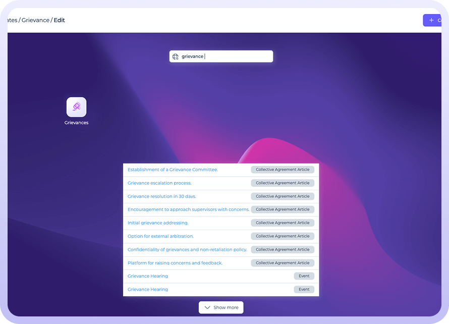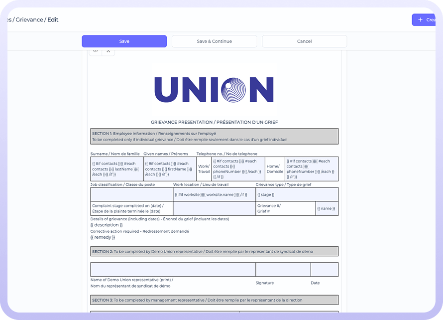 The document generator works seamlessly with your member database, grievances, and collective agreements — so you can pull any info you need into a ready-to-send PDF without ever leaving the platform.