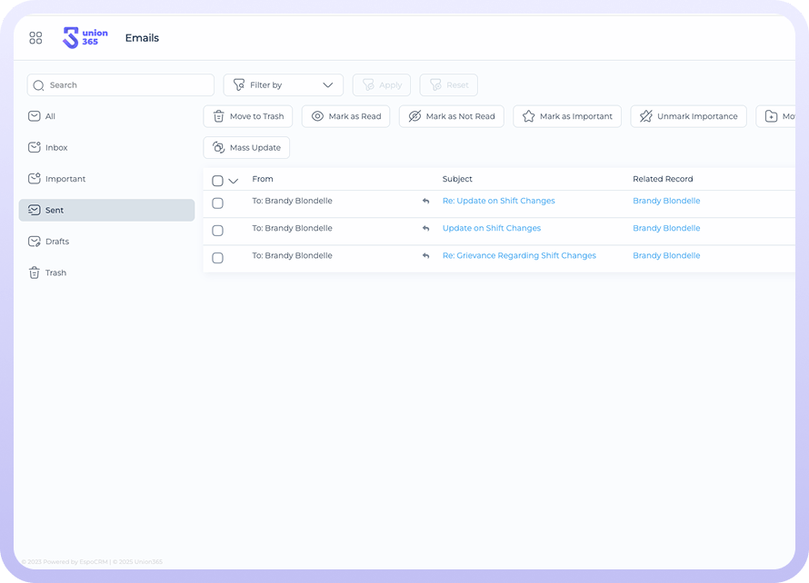 Union365’s Global Search gives you lightning-fast access to everything across your platform — from member profiles and grievances to agreements, documents, and emails.