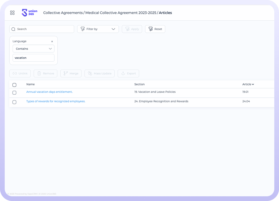 All your union data, instantly searchable. All in one place.