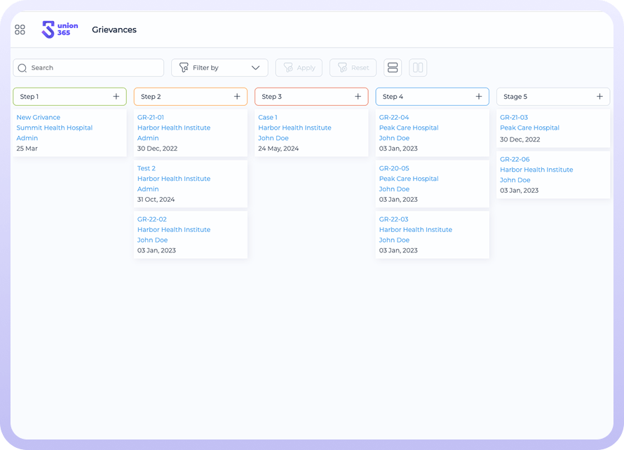 Union365 makes the entire grievance process digital. Store, manage, and track every case in one secure online system — no more paper trails or shared drives.
