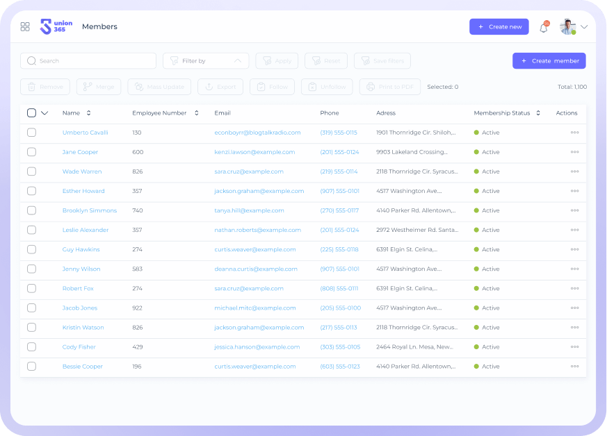 With its clean, user-friendly design, Union365 makes it simple to enter, update, and manage member data — no training required. If you can use email, you can use this platform with confidence.