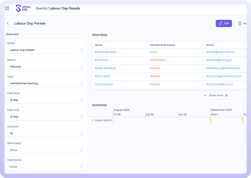 Members see what’s relevant to them — executive meetings for officers, job action dates for all, training sessions for stewards. You stay organized, and no one gets overwhelmed with unnecessary info.