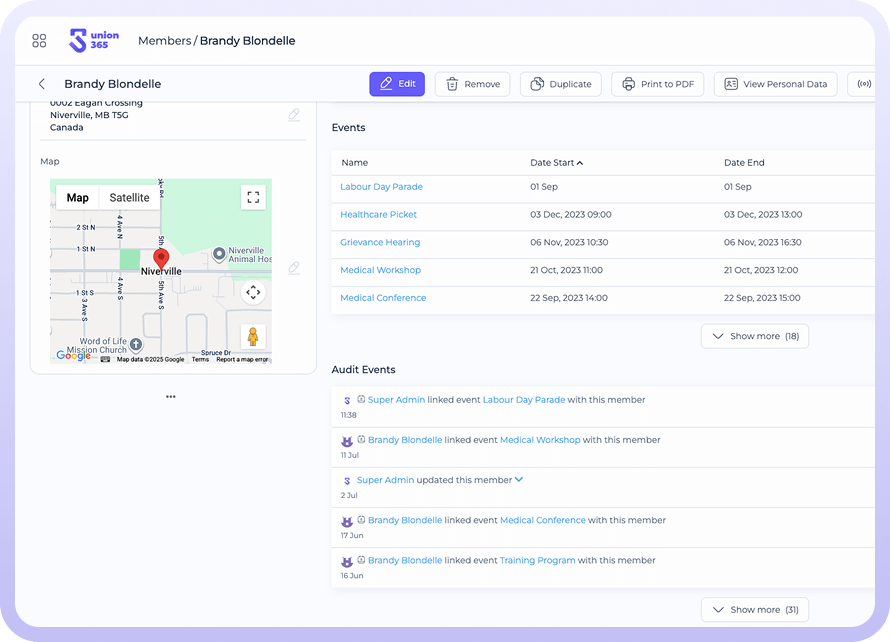 Track union events and meetings